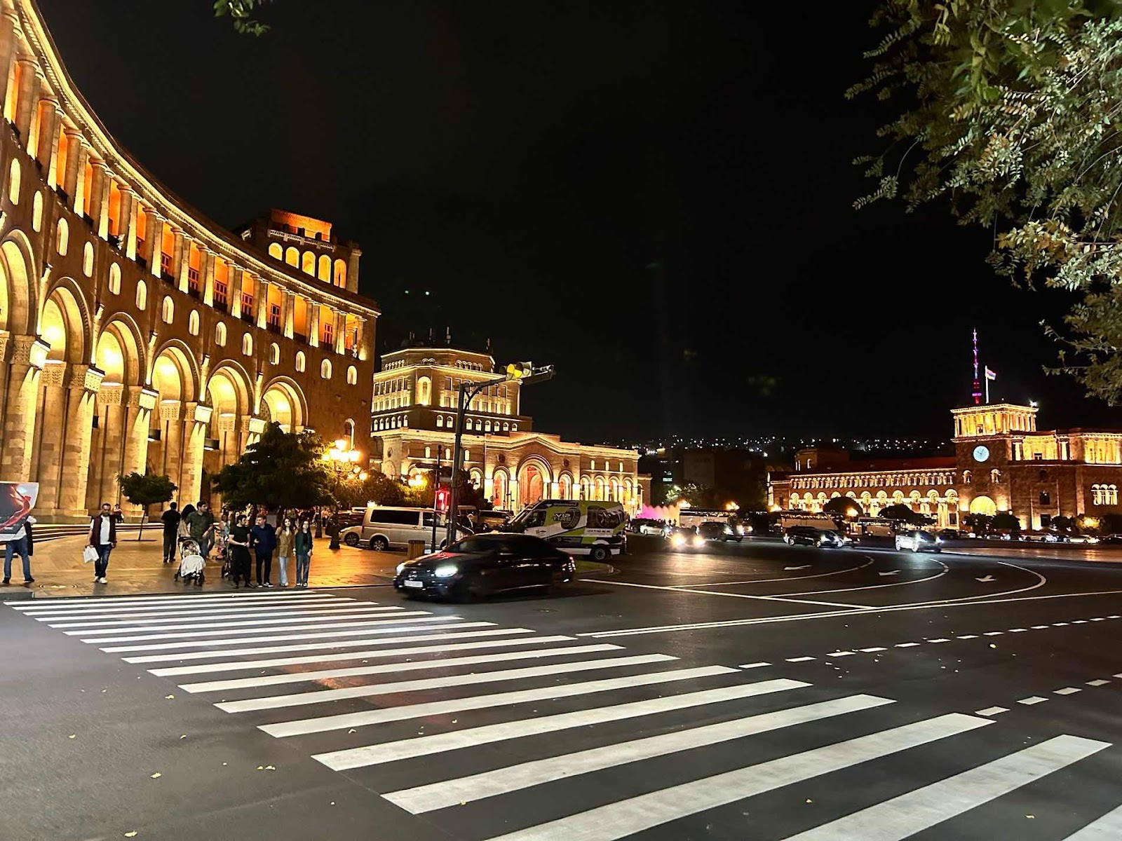 Nach dem Einchecken in meinen sehr kleinen und leider fensterlosen Zimmer (da habe ich gepennt) bin ich dann los um mir ein Restaurant zu suchen. Eriwan ist wirklich eine Großstadt, viel mehr als unser doch eher provinzielles Düsseldorf. Hohe Häuser, die auch hohe Zimmerdecken vermuten lassen, dominieren die sehr breiten Straßen. In dem Viertel, in dem ich bin, gibt es unzählige Restaurants, aber alle von einem Niveau, wo man mit einem ordentlichen Jacket und langer Hose eher passend gekleidet ist.