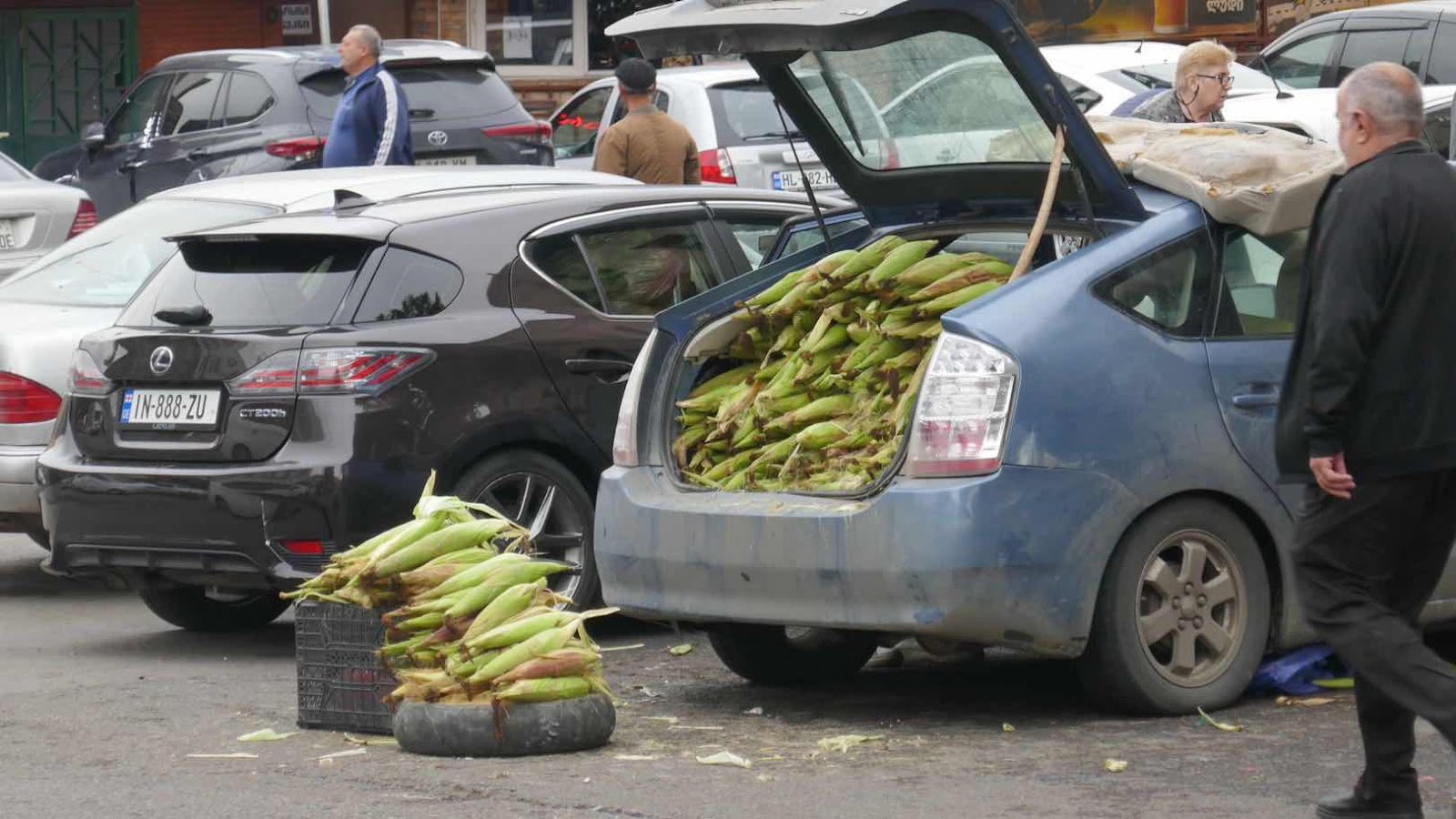 Der ganze Stadtteil scheint ein einziger Markt zu sein. In einem Bereich sind die Stände überdacht und es ist relativ leer. Ich schlendere da so durch. Werde von den Frauen oft mit Papa angesprochen. Dann folgt ein Wortschwall auf georgisch, den ich natürlich nicht verstehe. Aber dann wird auch schnell umgeschwenkt und einzelne Waren werden auf Englisch genannt. Die Frauen sind aber nicht aufdringlich, das passt schon. Und in einer Ecke standen wieder viele bunte Plastikflaschen herum: hausgemachter Wodka.
